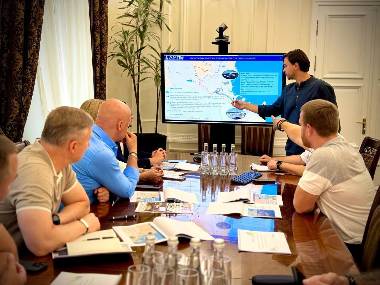 Під час наради з керівником Одеської філії АМПУ Дмитром Назаренком обговорили маршрути в’їзду та виїзду з порту через міські вулиці, необхідність диспетчеризації, контроль користування накопичувальними майданчиками стівідорами, а також підготовку міської дорожньої інфраструктури до додаткового навантаження.