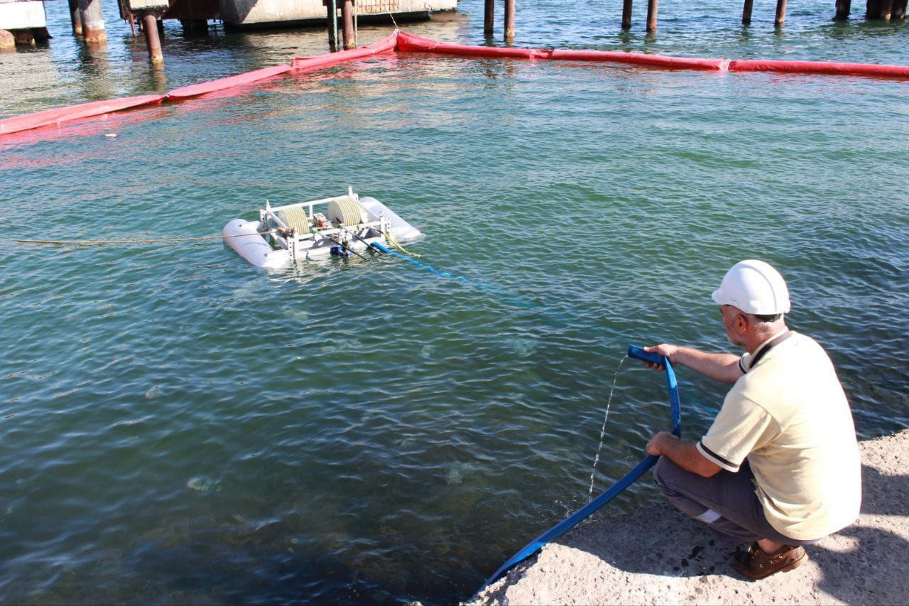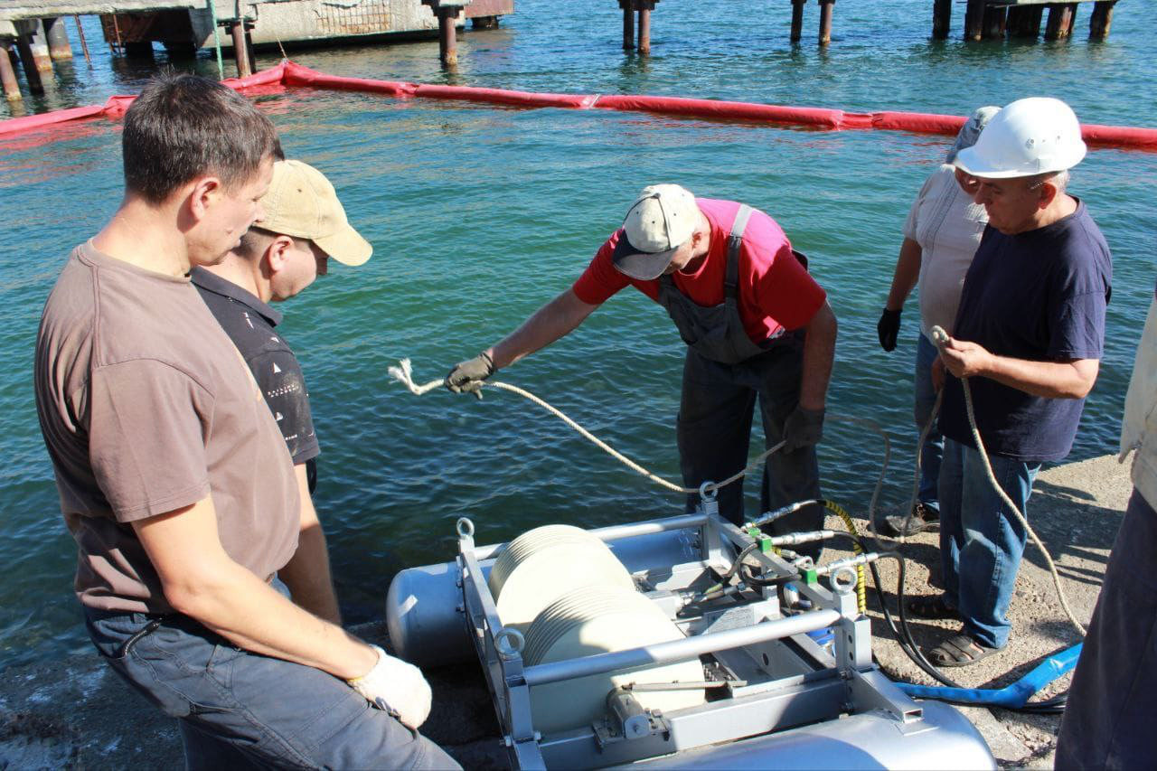 Крім того, проведено практичні навчання з локалізації та ліквідації можливих розливів нафтопродуктів та інших шкідливих речовин у акваторії порту. Під час заходів застосовувався сучасний скіммер, призначений для очищення водної поверхні.